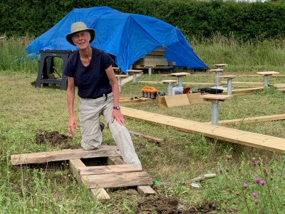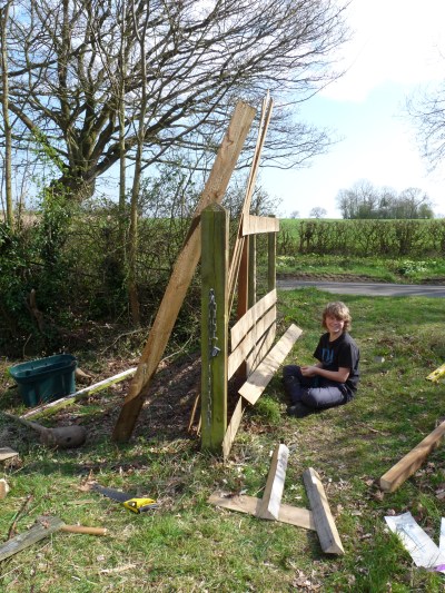 This category of activity includes all those things that aren’t really to do with wildlife directly, but are important to allow access to enjoy and observe wildlife and all the activities which take place at Tiggins Meadow. We decided early on that, while we wanted the human impact to be low, we did not just want to shut the gate and keep humans out entirely. This meant paths, bridges, seating and an accessible gateway were an important element. When we bought Tiggins Meadow it already had a big metal gate across the entranceway which we felt we needed to keep locked in order to prevent unauthorised vehicle access. We leave it open when we are on site, but we have now inserted a pedestrian gate in the side fence of the entrance and this is not locked. We do make reasonable efforts to keep paths and bridges useable, but we must remind users that this is just a field so care is needed – it’s often bumpy and slippery and brambles like to send runners out to trip the unwary !